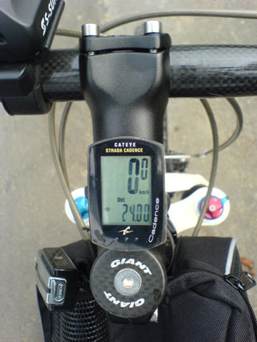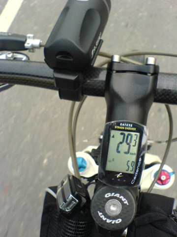 新里程表,前一陣子騎往安平時終於受不了無線碼表的干擾,我的最高時速變成128km/h也就算了(至少有一種阿Q式的優越感),只是回程時一過黃金海岸時速怎麼催都是0就很誇張了,當天回來後就順道去二聖店換了這顆,多了一條醜醜的線(走的還滿醜的),但是至少不會給我搞飛機,也比較便宜。