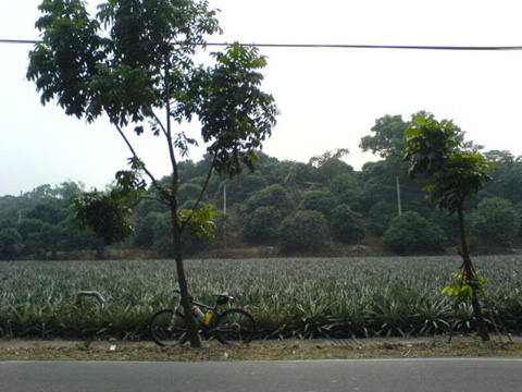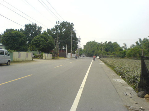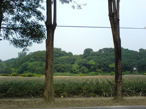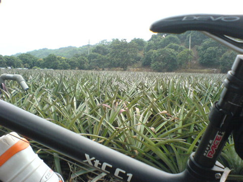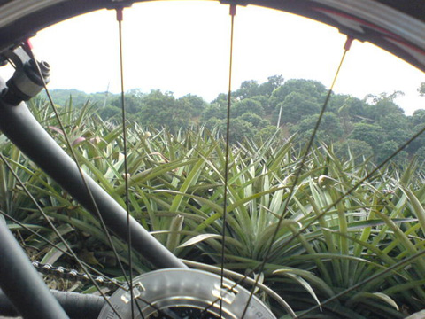 終於來到坡底了,一樣仍是滿山的鳳梨田。這時肚子已經不爭氣地叫了起來。