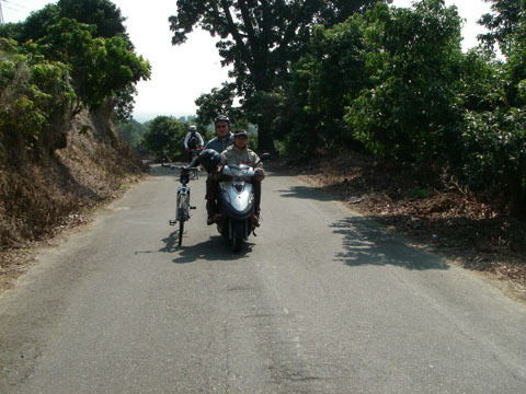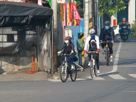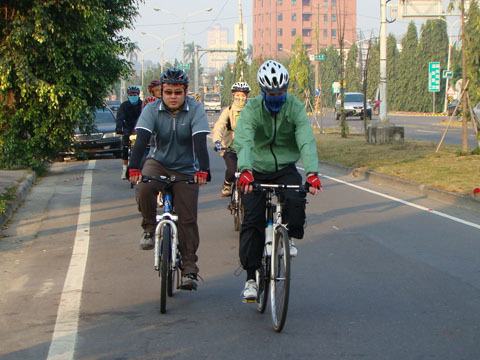 左邊正在看來車過馬路的是筱晴,這次是被騙來參加的,勇氣可嘉。白色安全帽的是大家的燈塔,solarwind的救星,隊上的偉人(?),big brother鄭,壓後的是超愛off road的智顯,隊上的攝影士兼off road指導員。