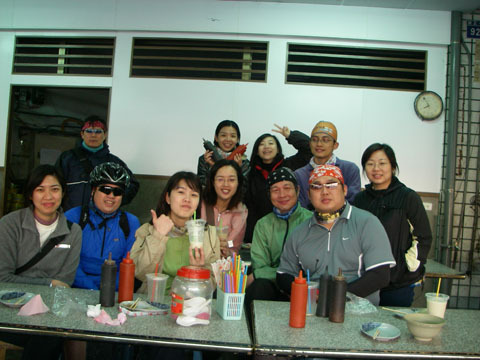 另一個不可思議的是,明明不是親子路線,參加的新手人數卻是最多的,這次大概有兩個半算第一次參加吧。說實在的,我們也應該辦個幾次稍微簡單一點的路線,免得其他人對我們的菜單老是敬而遠之。我們每次出遊,雖然說休息次數不少,騎乘速度太慢,集合時間老是遲到,但是幾乎每次都是結結實實的100公里到150公里,早在創業維艱(?)初期,大家都已經加入百k俱樂部了。