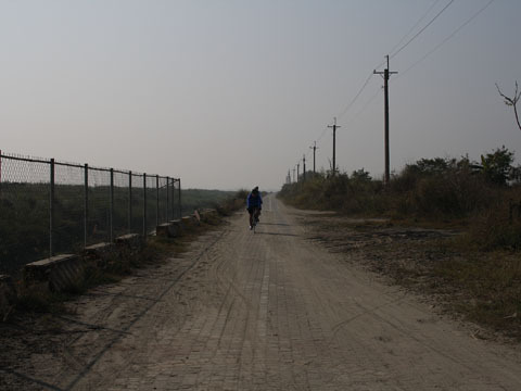 這大概是我騎過最糟糕的自行車道,騎沒多久就從柏油變成磚塊地面,然後是一片荒涼的沙地。