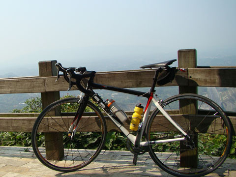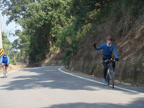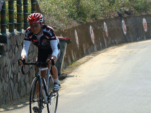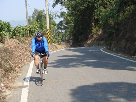 等了許久,不見DAVID上山,對向倒是來了不少公路車友,不過人家臉不紅氣不喘,看來我得多加練習。