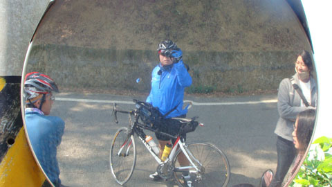 路邊有個反光鏡,我喝口水喘個氣先。