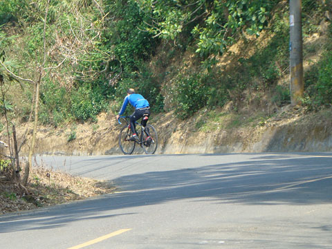 一直到這個坡出現,我就定竿不得不下車牽了。老實說出發前雖然毫不在意地口口聲聲說騎不上去就牽吧這樣的話,心中還是會介意的。這是我騎車一年多來第一次牽車,心中有點慚愧,也有點罪惡感。事隔三月我跟施醫師們騎北大武(後略述),也是我第一次因信念放棄而沒攻頂,說實在的,對我而言,爬陡坡很多時候靠的不是肌力耐力或管它甚麼東西的爆發力,而是一股永不放棄的毅力,這兩次放棄大概會梗在我心中好長一陣子吧。