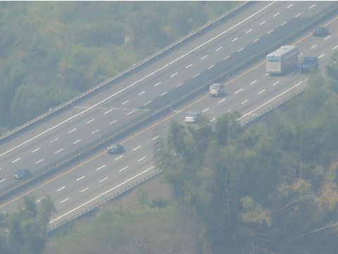 繼續扛,斜張橋快到了。智顯也在慢慢龜,大家都不想把車子震壞吧。