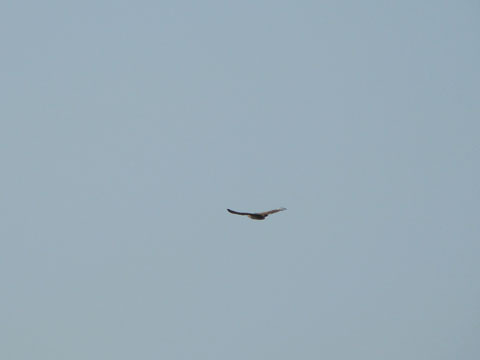 此時,剛剛的大冠鷲又出現了,剛剛錯過的我趕緊裝上望遠鏡頭,不過實在是太遠了,只能照到這樣.....。(´Д`;)