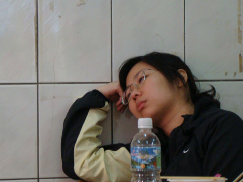 大概是浩浩湯湯,橫無際涯的景色讓人五內俱快,大夥兒都賴著不肯走了。筱晴有點HIGH過頭,大概是累翻了吧?不過後面大隻佬左擁右抱哦!