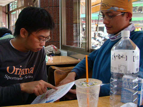 飲料足飯飽後(我的把手不沾酒!),大家開始討論這邊究竟是何方,找找回家的路線。還好這時有先查一查,要不然會一路騎到台南去.....。加把勁吧!還得回醫院呢!
