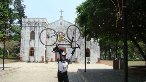 鄭大哥騎的還是骨董公路車。後面大隻佬不要亂抽車!