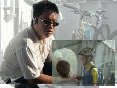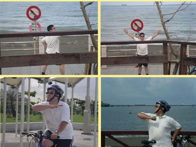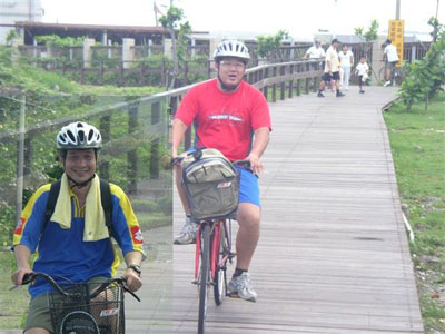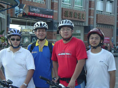 這一張就要好好的介紹一下啦!這可是大隻佬難得騎著傳說中的淑女車喔!一整個感覺就很妙,旁邊特地放了一張鄭大哥騎著同樣一台車的照片,妙在哪大家就自己意會了